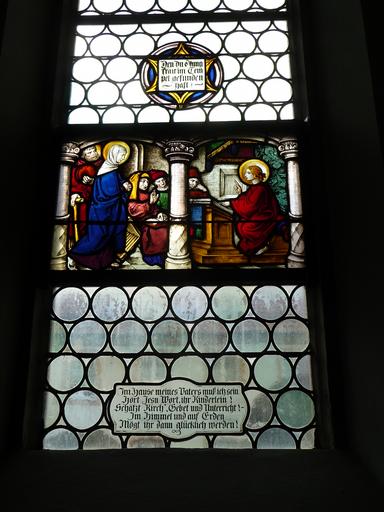 Keywords: Kirche Steinwiesen 05.jpg en Sankt Maria Steinwiesen own Immanuel Giel 2011-03-20 Cc-zero Sankt Maria Steinwiesen Jesus Christ among the doctors on stained glass windows