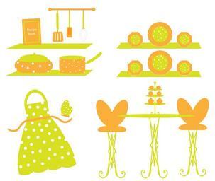 Keywords: kitchen utensils apron chair chairs crockery plates green orange illustration elements design