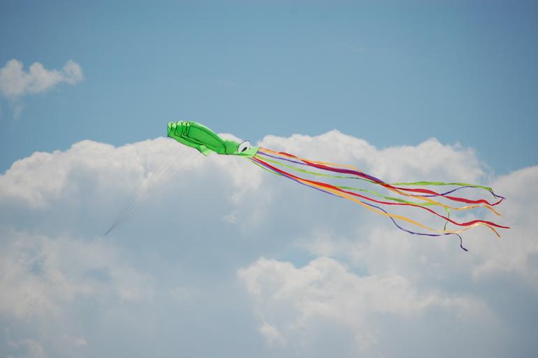 Keywords: kite sky blue fun summer wind fly colorful cloud bright childhood sunny tail