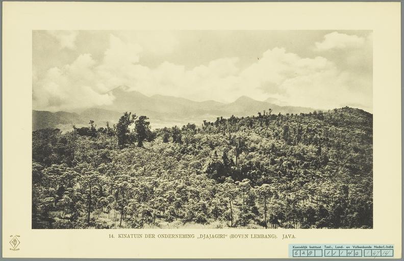 Keywords: KITLV - 37344 - Demmeni, J. - Tulp, De - Haarlem - Cinchona plantations of the plantation Jaya Giri near Lembang, Java - 1911.tif nl Kina aanplant van de onderneming Djajagiri bij Lembang Met onderschrift 14 Kinatuin der onderneming 'Djajagiri' boven Lembang Java en Cinchona plantations of the plantation Jaya Giri near Lembang Java Caption 14 Kina garden of the company 'Djajagiri' above Lembang Java 14 x 23 5 cm exhibition history Universiteitsbibliotheek Leiden Koninklijk Instituut voor Taal- Land- en Volkenkunde nl Foto - Fotolithografie en Photograph - Photolithography keywords Bandung - cinchona - Indonesia - Jawa Barat - landscapes - plantations Album number 320 nl Bijzonderheden Korte toelichtende tekst bij het plaatwerk Indiƫ in beeld' / uitgegeven door den A N W B Toeristenbond voor Nederland - Haarlem De Tulp 1911 - 23 p object history origin PD-old-70-1923 KITLV donation Demmeni J Demmeni Jean 1866-1939 - Tulp De / Haarlem http //media-kitlv nl/all-media/indeling/detail/form/advanced q_search_signatuur 37344 Leiden University Library KITLV image 37344 http //media-kitlv nl Homepage media-kitlv nl KITLV Uploaded with GWToolset KITLV_-_37344_-_Demmeni _J _-_Tulp _De_-_Haarlem_-_Cinchona_plantations_of_the_plantation_Jaya_Giri_near_Lembang _Java_-_1911 https //socrates leidenuniv nl/wikiMedia/37344 tif Media contributed by KITLV Photographs by Jean Demmeni from KITLV Uncategorized 2016 July 2 |