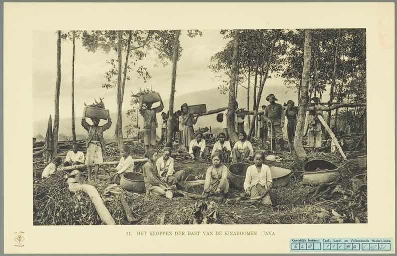 Keywords: KITLV - 37361 - Demmeni, J. - Tulp, De - Haarlem - The beating of the bark of Cinchona trees the plantation Djajagiri in Lembang (Jayagiri, Lembang), at the right is the administrator of the plantation Mr Jansz - 1911.tif nl Het kloppen van de bast van kinabomen op de onderneming Djajagiri bij Lembang rechts staat de administrateur van de onderneming de heer Jansz Met onderschrift 31 Het kloppen der bast van de kinaboomen Java en The beating of the bark of Cinchona trees the plantation Djajagiri in Lembang Jayagiri Lembang at the right is the administrator of the plantation Mr Jansz Caption 31 Breaking the bark of the kina trees Java 14 x 23 5 cm exhibition history Universiteitsbibliotheek Leiden Koninklijk Instituut voor Taal- Land- en Volkenkunde nl Foto - Fotolithografie en Photograph - Photolithography keywords Bandung - cinchona - Indonesia - Jawa Barat - plantation workers Album number 320 nl Bijzonderheden Korte toelichtende tekst bij het plaatwerk Indiƫ in beeld' / uitgegeven door den A N W B Toeristenbond voor Nederland - Haarlem De Tulp 1911 - 23 p object history origin PD-old-70-1923 KITLV donation Demmeni J Demmeni Jean 1866-1939 - Tulp De / Haarlem http //media-kitlv nl/all-media/indeling/detail/form/advanced q_search_signatuur 37361 Leiden University Library KITLV image 37361 http //media-kitlv nl Homepage media-kitlv nl KITLV Uploaded with GWToolset KITLV_-_37361_-_Demmeni _J _-_Tulp _De_-_Haarlem_-_The_beating_of_the_bark_of_Cinchona_trees_the_plantation_Djajagiri_in_Lembang_ Jayagiri _Lembang _at_the_right_is_the_administrator_of_the_plantation_Mr_Jansz_-_1911 https //socrates leidenuniv nl/wikiMedia/37361 tif Media contributed by KITLV Photographs by Jean Demmeni from KITLV Uncategorized 2016 July 2 |