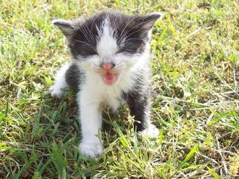 Keywords: Kitten (05) by Ron.jpg pl Pyszczek kotka czarnego białe łapy; pierwszy miesiąc życia own Ron whisky 01-06-2008 Kittens Blue-eyed cats Black and white kittens