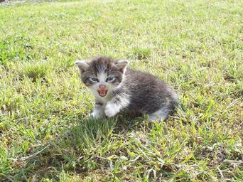 Keywords: kitten playing yard kitty young feline domestic little small cute shorthair pet