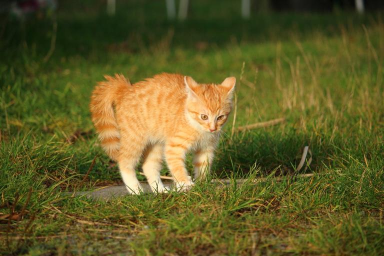 Keywords: kitten red mackerel tabby cat baby cat autumn playful meadow