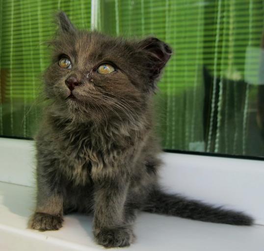 Keywords: kitten small cat cute young animal feline kitty fur cute cat curiosity pets gray baby tail