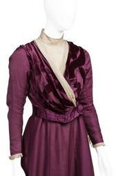 Keywords: Klänning. Foto till boken: Ett sekel av dräkt och mode ur de Hallwylska samlingarna - Hallwylska museet - 89371.tif KLÄNNING Liv och kjol Av rödgredelint siden satin fleur brocade med invävd ornering av likafärgad sammet samt garnering av knypplade och sydda gulvita spetsar duchesse de Bruxelles samt knypplade gulvita silkesspetsar och ljusgrå chiffon Hand- och maskinsydd Liv 1 Lågt bestående av två framstycken två sidostycken och ett ryggstycke alla sneddade Knäppning framtill med hakar av mässing och langetterade svarta små metallringar Halsurringning rund innanför kanten en dragsko med vit bomullssnodd Skärp av längdveckat rödgredelint sidenripsband och knäppt med svarta metallhakar och langetthyskor Rosett av bandet Ärmar av ljusgrå chiffon upptill utanpå dessa en kort holkliknande ärm av siden Foder av vit smalrandig bomullssatin Liv 2 Högt Sidenets drapering och livfodret som på liv 1 Halsurringning rund med hög uppstående krage Skärp av längdveckat rödgredelint merveilleuxband samt knäppt med svarta metallhakar och langetthyskor Rosett av dylikt band Ärmar svagt sneddade samt rynkade upptill och vid armbågen Foder av vitt bomullstyg Ärmkrås av plisserad smal spets som på livet Kjol Bestående av åtta våder samt med foderkjol av rosafärgad sidentaft Mått Liv 1 längd omkring 48 cm ; halsvidd omkring 87 cm ; midjevidd omkring 72 cm Ärmar längd omkring 49 cm Midjeband längd omkring 76 cm ; bredd omkring 3 cm Spets på livet längd omkring 3 35 m ; bredd omkring 11 cm Spets på ärmarna längd omkring42 cm ; bredd omkring 10 cm Liv 2 längd omkring 54 cm ; halsvidd omkring 39 cm ; halskrage höjd omkring 6 cm ; midjevidd omkring 75 cm Ärmar längd omkring 61 cm Midjeband längd omkring 80 cm ; bredd omkring 3 cm Spets på livets framstycken bredd omkring 12 cm Spets på ärmarna längd omkring 1 74 m bredd omkring 6 cm Spets på kragen bredd omkring 6 cm Spets på isättningen och ryggen bredd omkring 17 cm Kjol längd fram omkring 1 14 m ; bak omkring 1 36 m ; vidd omkring 4 54 m Linning längd omkring 80 cm På liv 2 det vita sidenfodret på isättningen och halskragen mycket trasigt Foderkjolen mycket nött Klänningen med urringat liv Förfärdigad efter beställning av Wilhelmina von Hallwyl 1909 hos Fr V Tunborg Co syatelier Sidentyget inköpt av Wilhelmina von Hallwyl i Oktober 1909 från k k hovleverantören G Henneberg Zürich Spetsarna inköpta av Wilhelmina von Hallwyl i Februari 1886 från Léon Sacrés spetsfabrik Bryssel Höga livet förfärdigat efter beställning av Wilhelmina von Hallwyl 1910 hos Fr V Tunborg Co Åter omsytt efter modernt snitt och ny spets påsatt 1912 hos Fr V Tunborg Co Buren av Wilhelmina von Hallwyl den 16 Oktober 1909 vid hennes dotterdotter Carola von Eckermanns bröllop med greve Axel Wachtmeister av Johannishus original caption Klänning Foto till boken Ett sekel av dräkt och mode ur de Hallwylska samlingarna <br/> Nyckelord Tunborg Co Klänning Vinröda Föremålsbild Ett sekel av dräkt och mode ur de Hallwylska samlingarna HWY Anna Fridrica Wilhelmina von Hallwyl f Kempe place of origin original filename hm_dig3469 8263 inventory number HWY XXII I A 11 89371 CC-BY-SA Jens Mohr <gallery caption Different images of same object > File Insida klänning detalj Foto till boken Ett sekel av dräkt och mode ur de Hallwylska samlingarna - Hallwylska museet - 89341 tif File Klänning detalj Foto till boken Ett sekel av dräkt och mode ur de Hallwylska samlingarna - Hallwylska museet - 90114 tif File KLÄNNING Liv och kjol av rödgredelint siden tillhört Wilhelmina von Hallwyl - Hallwylska museet - 89099 tif File Klänning av rödgredelint siden Tillhört Wilhelmina von Hallwyl - Hallwylska museet - 89313 tif File Klänning detalj Foto till boken Ett sekel av dräkt och mode ur de Hallwylska samlingarna - Hallwylska museet - 89387 tif </gallery> Jens Mohr Purple dresses Clothing in the Hallwyl museum Female clothing Media contributed by LSH unmatched creator Media contributed by LSH unmatched keyword 1900s fashion Media contributed by LSH 2013-10 |
