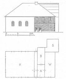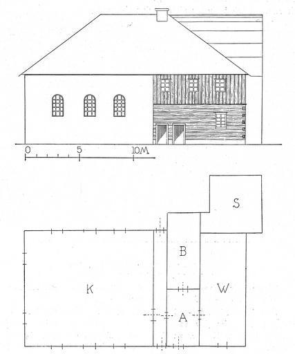 | Keywords: Klein-Schüttüber Synagoge.jpg  cs Obrázek 111 str 138 Malá Šitboř bývalá synagoga 1808-1914 čelní pohled a půdorys legenda A - vstup na ženskou galerii B - pekárna K - modlitebna S - stodola W - obytná část de Abb 111 Klein-Schüttüber Synagoge 1808-1914 Frontale Ansicht und Grundriß Erklärung A Aufgang in der Frauenchor B Bäckerei K Kultraum S Scheune W Wohnung 1928 1930 Topographie der historischen und kunstgeschichtlichen Denkmale in den Bezirken Tepl und Marienbad 1932 Anton Gnirs 1873-1933 other versions File Gnirs Tepl p137-138 Klein-Schütübber djvu 50 0552778 12 5322222 Custom license marker 2015 05 12 PD-old Uploaded with UploadWizard Demolished synagogues in the Czech Republic Synagogues in Karlovy Vary Region Built in the Czech Republic in 1808 Destroyed in the Czech Republic in 1914 Malá Šitboř Gnirs TopographieTepl und Marienbad |