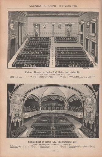 | Keywords: Kleines Theater in Berlin, Unter den Linden 44 und Lustspielhaus in Berlin SW, Friedrichstraße 236, Bestuhlung 1912.jpg Rudolph Hertzog Agenda 1912 Jahreskalender des Berliner Kaufhauses Seite 102 Kleines Theater in Berlin Unter den Linden 44 und Lustspielhaus in Berlin SW Friedrichstraße 236 Leinen 224 Seiten 19 5 x 28 5 cm Collection Kuhn 1912 publication date author PD-old <gallery> File Kleines Theater in Berlin Unter den Linden 44 Bestuhlung 1912 jpg File Lustspielhaus in Berlin SW Friedrichstraße 236 Bestuhlung 1912 jpg </gallery> Rudolph Hertzog Agenda 1912 102 Kleines Theater Berlin Lustspielhaus Berlin |