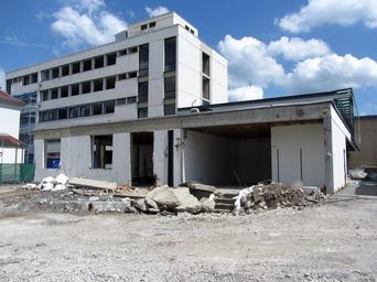 | Keywords: Klinikum Darmstadt Abriss 2013.JPG de Beginn der Abrissarbeiten am Verwaltungsgebäude und der früheren Hauptpforte own Stefan Bellini 2013-05-06 Klinikum Darmstadt Demolitions in Hesse Darmstadt Files by User Stefan Bellini - Photos taken in Hesse Taken with Canon PowerShot SX230 HS Cc-zero |