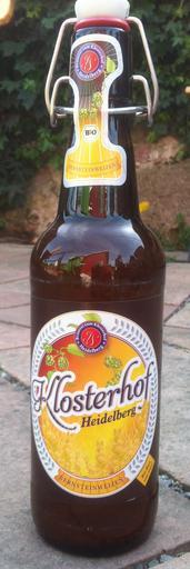 Keywords: KlosterhofWeizen.jpg en A bottle of Klosterhof Bernsteinweizen beer own Miguel Andrade 2014-04-17 Beer bottles brown glass Beers of Baden-Württemberg Cc-zero