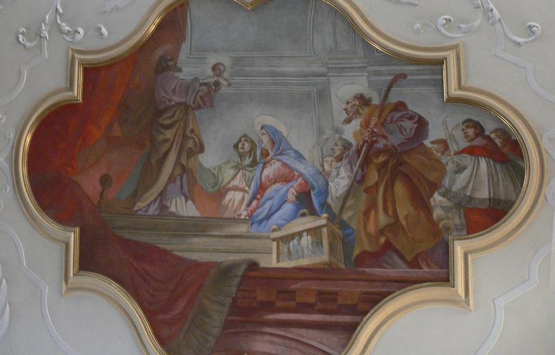 | Keywords: Klosterkirche St Märgen Deckengemälde Darstellung des Herrn.jpg Ehemalige Klosterkirche heute Katholische Pfarr- und Wallfahrtskirche Mariä Himmelfahrt St Märgen im Schwarzwald<br /><br /> Deckengemälde Darstellung des Herrn aus der Zeit des Kirchenneubaus nach dem Brand von 1907 ca 1912 Interior of St Märgen Schwarzwald Frescos in Landkreis Breisgau-Hochschwarzwald 1910s frescos in Baden-Württemberg Frescos of the presentation of Jesus Christ at the Temple Photos by User AndreasPraefcke |