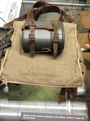 Keywords: Knapsack, Model 1915 - National World War I Museum - Kansas City, MO - DSC07785.JPG Exhibit in the National World War I Museum at the Liberty Memorial 100 W 26th Street Kansas City Missouri USA Photography was permitted in the museum without restriction Daderot 2011-11-01 15 31 57 Daderot Miscellany in the National World War I Museum |