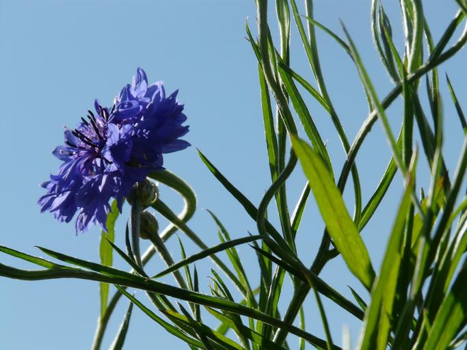 Keywords: knapweed cornflower leaves stalk blue true leaves lancet shaped ellyptic leaflet gap flower blossom bloom bud plant herb summer centaurea cyanus zyane centaurea composites asteraceae