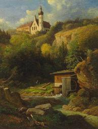 | Keywords: Köbel Andechs Blick zum Klosterhügel.jpg Andechs Blick von Bachlauf auf den Klosterhügel oil on canvas 41 x 33 cm zeller de century 19 Georg Franz Köbel 1807 “1894 PD-art Churches in Bavaria in art Kloster Andechs Images from Auktionshaus Zeller History of Landkreis Starnberg |