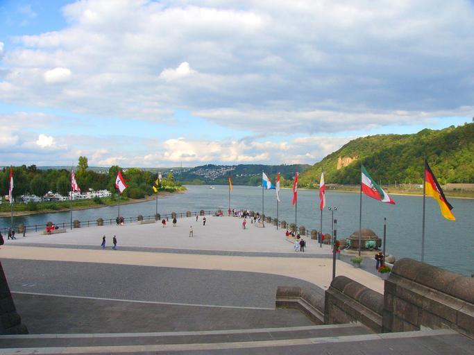 Keywords: Koblenz-deutsches eck09.jpg Das Deutsche Eck liegt an der Einmündung der Mosel in den Rhein in Koblenz Im Bild Blick vom Kaiser-Wilhelm-Denkmal auf das Deutsche Eck View to Deutsches Eck located at the confluence of Rhine and Moselle Rivers in Koblenz Germany own Nikater 2011-09-19 Own work all rights released Public domain 50 364142 7 605815 Heading NE Deutsches Eck 2011 in Koblenz |