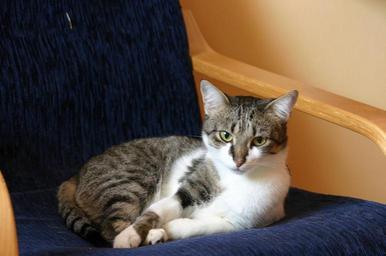 Keywords: Kočka v křesle.JPG cs Kočka domácí own Hadonos 2009-07-29 Brown tabby and white cats Lying cats