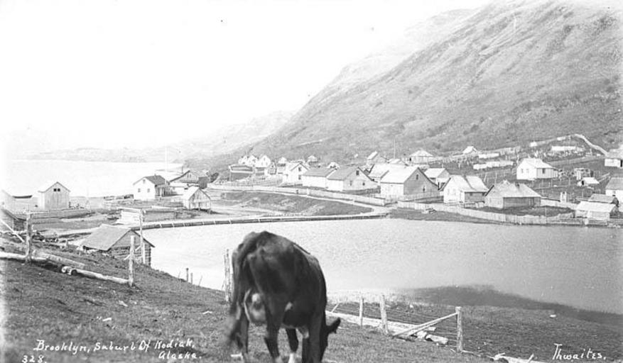 | Keywords: Kodiak residential section, ca 1912 (THWAITES 90).jpeg check categories 27 October 2016 2 Photograph Creator John E Thwaites Caption on image Brooklyn suburb of Kodiak Alaska PH Coll 247 133<br/>Kodiak is located near the eastern tip of Kodiak Island in the Gulf of Alaska Kodiak Island the emerald isle is the largest island in Alaska and is second only to Hawaii in the U S Kodiak National Wildlife Refuge encompasses nearly 1 9 million acres on Kodiak and Afognak Islands The Island has been inhabited by Sugpiaq Eskimos Alutiiq for the past 8 000 years The first non-Native contacts were in 1763 by the Russian Stephen Glotov and in 1792 by Alexander Baranov a Russian fur trapper Sea otter pelts were the primary incentive for Russian exploration and a settlement was established at Chiniak Bay the site of present-day Kodiak At that time there were over 6 500 Sugpiaq Eskimos in the area and the Island was called Kikhtak It later was known as Kadiak the Inuit word for island Kodiak became the first capital of Russian Alaska and Russian colonization had a devastating effect on the local Native population By the time Alaska became a U S Territory in 1867 the Koniag region Eskimos had almost disappeared as a viable culture Sea otter fur harvesting was the major commercial enterprise and eventually led to the near extinction of the species However in 1882 a fish cannery opened at the Karluk spit This sparked the development of commercial fishing in the area The City of Kodiak was incorporated in 1940 During the Aleutian Campaign of World War II the Navy and the Army built bases on the Island Fort Abercrombie was constructed in 1939 and later became the first secret radar installation in Alaska Development continued and the 1960s brought growth in commercial fisheries and fish processing The 1964 earthquake and subsequent tidal wave virtually leveled downtown Kodiak The fishing fleet processing plant canneries and 158 homes were destroyed - 30 million in damage The infrastructure was rebuilt and by 1968 Kodiak had become the largest fishing port in the U S in terms of dollar value The Magnusson Act in 1976 extended the U S jurisdiction of marine resources to 200 miles offshore which reduced competition from the foreign fleet and over time allowed Kodiak to develop a groundfish processing industry Subjects LCTGM Kodiak Alaska ; Cities and towns--Alaska; Chiniak Bay Alaska ; Cows--Alaska--Kodiak; Bays Bodies of water --Alaska--Kodiak; Dwellings--Alaska--Kodiak depicted place Kodiak Alaska ca 1912 Institution University of Washington UWASH-THWAITES-source accession number thwaites 90 PD-old-auto-1923 1940 Information field Order Number THW079 Images from the John E Thwaites Photographs of Alaska Collection to check Kodiak Alaska Bays |