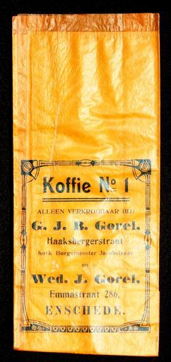 View Original:Koffie No 1 zakje van Wed J Gorel, Emmastraat 286 en GJB Gorel Haaksvergerstr, voorkant.JPG (1432x3025)