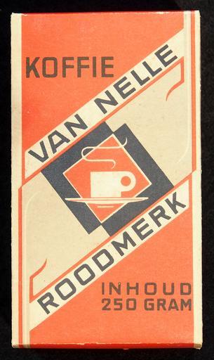 Keywords: Koffie Van Nelle Roodmerk etalage blokje, foto1.JPG Very old packaging of a product that is not produced and not sold any more own 2014-04-13 15 12 13 Alf van Beem CC-Zero Trademarked Van Nelle koffie