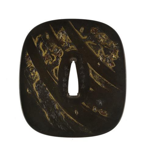 | Keywords: Koizumi Katsuchika - Tsuba with the Samurai Watanabe no Tsuna - Walters 51110 - Back.jpg This tsuba shows Watanabe no Tsuna a warrior who lived in the late 10th and early 11th century One stormy night he lay in wait at the Rashomon Gate in Kyoto to wait for one of the last demons left in the city Very late at night he felt something tugging at his helmet Striking out with his sword he cut off the demon's arm The demon ran away and Tsuna kept the arm locked in an iron box On the tsuba Tsuna and the demon face off across the sword opening The strong diagonal decorations on both the front and the back evoke the stormy night The Rashomon Gate is the same gate that figures in Akira Kurosawa's famous film of that name 1865 late Edo shibuichi with shakudo gold silver copper and gold alloy cm 8 5 accession number 51 110 19732 Henry Walters Baltimore date and mode of acquisition unknown Walters Art Museum Henry Walters Acquired by Henry Walters Transcription Inscribed takane tani no zu/oju kugai ko/keio gannen soshun/koizumi katsuchika kore o horu; Translation Inscribed Designed in a high mountain valley/By special request of Lord Kugai/ First year of Keio 1865 early spring/Koizumi Katsuchika carved this The Nature of Loyalty Japanese Warrior Prints of the Nineteenth Century The Walters Art Gallery Baltimore 1989 place of origin Edo present-day Tokyo Japan PD-old-auto 1916 Tsuba in the Walters Art Museum Koizumi Katsuchika Media contributed by the Walters Art Museum needs category review |