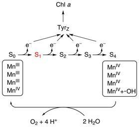 | Keywords: Kok-cycle.svg  en Kok-cylce in photosynthesis showing five S-states of the oxygen evolving complex de Kok-Zyklus des Sauerstoff produzierenden Komplexes in der Photosynthese bei dem fünf S-Zustände erreicht werden own Yikrazuul 2009-05-15 Photosynthesis SVG photosynthesis |