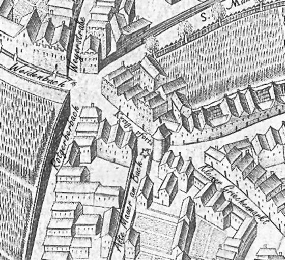 | Keywords: Kölner Griechenpforte und Umfeld 1571.jpg Ausschnitt des Mercator “ Stadtplanes Köln Bereich žGriechenpforte mit ergänzenden heutigen Straßenbezeichnungen Cutout of a old city map 16th century Cologne Scan by HOWI 1571 Creator Arnold Mercator Kölner Stadtansicht von 1570 PD-old-100 |