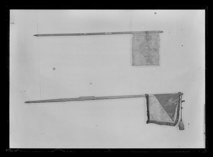Keywords: Kompanistandar för Västgöta tre- och femmänningar, under översten greve Gustav Fredrik Lewenhaupt - Livrustkammaren - 1197.tif Förfärdigat efter Karl XII s förordning den 2 aug 1700 Duk enkel av damast gul och svart ganska trasig skarvad nedtill horisontellt Dekor diagonalt delad i två fält det övre inre svart det nedre yttre gult; i inre hörnet målat omvänt lika på båda sidor ett upprätt lejon övre halvan i brunskuggat guld nedre i mörkgrått följt av två stjärnor i svartskuggat silver Västergötlands vapen Frans dubbel i svart och gult silke fäst vid stången med tre rader tennlickor på svarta och gula band Stång av trä kannelerad; holk av mässing; doppsko av läder fastsydd <br/><br/> 4 <br/>Katalogisering Rebecka Enhörning 1976-10-05 inmatning-utskrift PAr 1996-11-06 <br/><br/>Deposition till Armémuseum januari 1997 <br/><br/>Litteratur <br/>Cederström R Svenska kungliga hufvudbanér Stockholm 1900 nr 66 original caption 1700-08-02 silk Färg svart gul material silke - wood - brass size mm 45 skarv size mm 190 lejon size mm 540 size mm 460 size mm 2910 stång size mm 62 frans LRK place of origin original filename LN_B09090_011970 53343 inventory number LRK 16777 1197 CC0 Kompanistandar för Västgöta tre- och femmänningar under översten greve Gustav Fredrik Lewenhaupt - Livrustkammaren - 1197-negative tif <gallery caption Different images of same object > File Kompanistandar för Västgöta tre- och femmänningar under översten greve Gustav Fredrik Lewenhaupt - Livrustkammaren - 43208 tif File Kompanistandar för Västgöta tre- och femmänningar under översten greve Gustav Fredrik Lewenhaupt - Livrustkammaren - 68890 tif </gallery> Heraldic flags Media contributed by LSH dim-with multiple size templates Flags in the Livrustkammaren Media contributed by LSH 2013-10 |