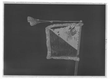 Keywords: Kompanistandar för Västgöta tre- och femmänningar, under översten greve Gustav Fredrik Lewenhaupt - Livrustkammaren - 43208-negative.tif Förfärdigat efter Karl XII s förordning den 2 aug 1700 Duk enkel av damast gul och svart ganska trasig skarvad nedtill horisontellt Dekor diagonalt delad i två fält det övre inre svart det nedre yttre gult; i inre hörnet målat omvänt lika på båda sidor ett upprätt lejon övre halvan i brunskuggat guld nedre i mörkgrått följt av två stjärnor i svartskuggat silver Västergötlands vapen Frans dubbel i svart och gult silke fäst vid stången med tre rader tennlickor på svarta och gula band Stång av trä kannelerad; holk av mässing; doppsko av läder fastsydd <br/><br/> 4 <br/>Katalogisering Rebecka Enhörning 1976-10-05 inmatning-utskrift PAr 1996-11-06 <br/><br/>Deposition till Armémuseum januari 1997 <br/><br/>Litteratur <br/>Cederström R Svenska kungliga hufvudbanér Stockholm 1900 nr 66 original caption 1700-08-02 silk Färg svart gul material silke - wood - brass size mm 45 skarv size mm 190 lejon size mm 540 size mm 460 size mm 2910 stång size mm 62 frans LRK place of origin original filename LN_B01175_004055 53343 inventory number LRK 16777 43208 CC0 Kompanistandar för Västgöta tre- och femmänningar under översten greve Gustav Fredrik Lewenhaupt - Livrustkammaren - 43208 tif <gallery caption Different images of same object > File Kompanistandar för Västgöta tre- och femmänningar under översten greve Gustav Fredrik Lewenhaupt - Livrustkammaren - 68890 tif File Kompanistandar för Västgöta tre- och femmänningar under översten greve Gustav Fredrik Lewenhaupt - Livrustkammaren - 1197 tif </gallery> |