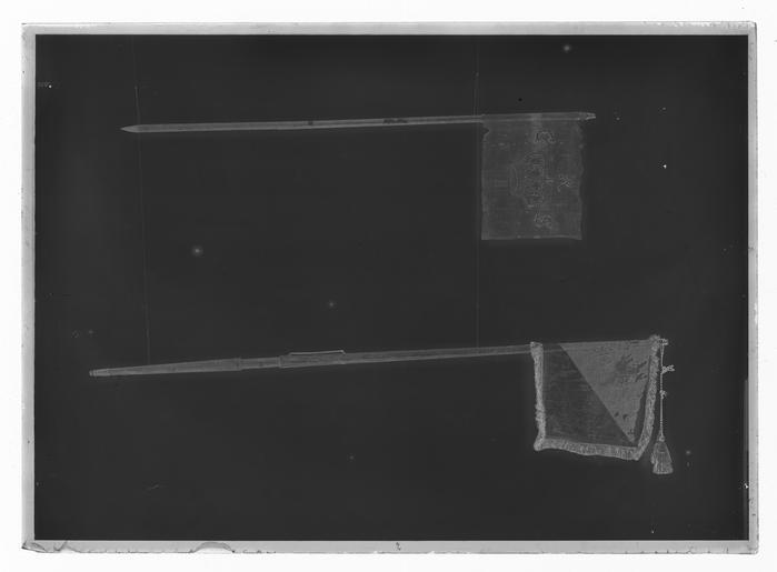 Keywords: Kompanistandar för Västgöta tre- och femmänningar, under översten greve Gustav Fredrik Lewenhaupt - Livrustkammaren - 1197-negative.tif Förfärdigat efter Karl XII s förordning den 2 aug 1700 Duk enkel av damast gul och svart ganska trasig skarvad nedtill horisontellt Dekor diagonalt delad i två fält det övre inre svart det nedre yttre gult; i inre hörnet målat omvänt lika på båda sidor ett upprätt lejon övre halvan i brunskuggat guld nedre i mörkgrått följt av två stjärnor i svartskuggat silver Västergötlands vapen Frans dubbel i svart och gult silke fäst vid stången med tre rader tennlickor på svarta och gula band Stång av trä kannelerad; holk av mässing; doppsko av läder fastsydd <br/><br/> 4 <br/>Katalogisering Rebecka Enhörning 1976-10-05 inmatning-utskrift PAr 1996-11-06 <br/><br/>Deposition till Armémuseum januari 1997 <br/><br/>Litteratur <br/>Cederström R Svenska kungliga hufvudbanér Stockholm 1900 nr 66 original caption 1700-08-02 silk Färg svart gul material silke - wood - brass size mm 45 skarv size mm 190 lejon size mm 540 size mm 460 size mm 2910 stång size mm 62 frans LRK place of origin original filename LN_B09090_011970 53343 inventory number LRK 16777 1197 CC0 Kompanistandar för Västgöta tre- och femmänningar under översten greve Gustav Fredrik Lewenhaupt - Livrustkammaren - 1197 tif <gallery caption Different images of same object > File Kompanistandar för Västgöta tre- och femmänningar under översten greve Gustav Fredrik Lewenhaupt - Livrustkammaren - 43208 tif File Kompanistandar för Västgöta tre- och femmänningar under översten greve Gustav Fredrik Lewenhaupt - Livrustkammaren - 68890 tif </gallery> |