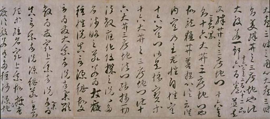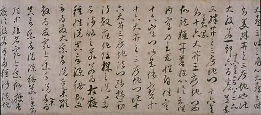 | Keywords: Kongo Hanyakyo Kaidai Kukai NNM.jpg  en Segment of the Kongōhannyakyō Sutra Commentary 金剛般若経開題残巻 Kongōhannyakyō kaidai zankan Segment of a commentary explaining the title of the Diamond Sutra The full commentary was originally located in Sanbō-in before being cut in segments One handscroll ink on Japanese tissue paper 38 lines 28 1 × 131 8 cm 11 1 × 51 9 in Located at Nara National Museum Nara Nara http //sips03 narahaku go jp/meihin/syoseki/102_a html Kukai century 9 PD-Art National Treasures of Japan writings  |
