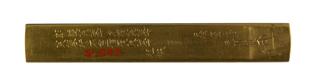 Keywords: Kôno Haruaki - Kozuka with Mt Fuji - Walters 51844 - Back.jpg Mt Fuji is executed in silver with clouds at the lower right Mt Fuji is the most sacred mountain in Japan It has long been an important site for pilgrimage and is still a popular tourist destination On the reverse is a poem by the Japanese Confusian scholar Ogyû Sorai 1666-1728 1840 Edo shakudo silver cm 9 6 accession number 51 844 15688 William T / Henry Walters Collection Baltimore date and mode of acquisition unknown Walters Art Museum Henry Walters Acquired by William T or Henry Walters Date Tenpo kanoene taisô; Translation January 1840; Signature Haruaki Hôgen kao The Taste of Maryland Art Collecting in Maryland 1800-1934 The Walters Art Gallery Baltimore 1984 place of origin Edo present-day Tokyo Japan Walters Art Museum license Tosogu Japanese sword fittings in the Walters Art Museum Kôno Haruaki Media contributed by the Walters Art Museum needs category review
