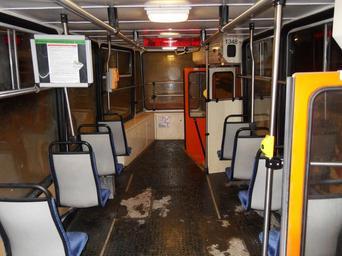 Keywords: Konstal 105Na in Gdansk newest interior no driver's cab.JPG en A Konstal 105Na tram in Gdańsk - front the newest version of interior no driver's cab a diode display new seats pl Przód tramwaju Konstal 105Na w Gdańsku jako wagon doczepny wnętrze po modernizacji usunięta kabina motorniczego zamontowany wyświetlacz diodowy nowe siedzenia own Artur Andrzej 2010-12 Konstal 105Na in Gdańsk Tram interiors in Gdańsk