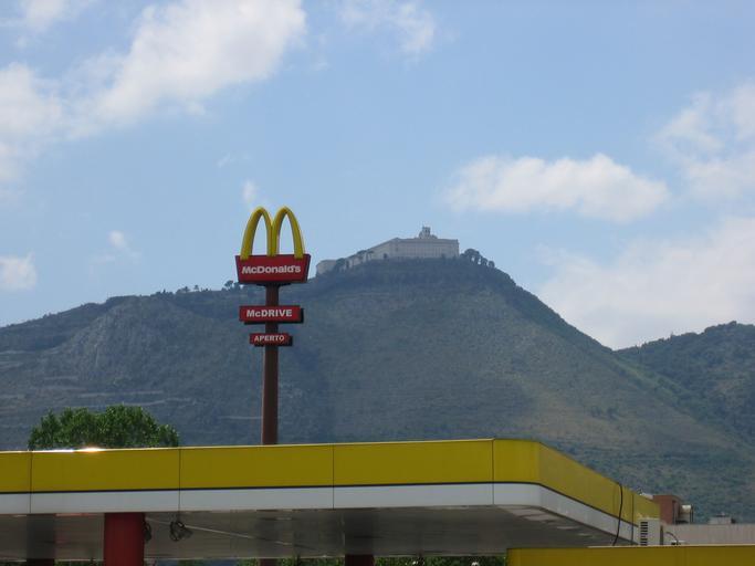 Keywords: Kontrast.JPG de Blick von Cassino auf die Abtei Italien own Matthias Holländer 2005-07-09 Monte Cassino Abbey McDonald's restaurants in Italy