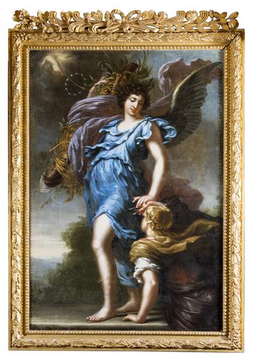| Keywords: Konung Karl XIs skyddsängel. Allegori (David Klöcker Ehrenstrahl) - Nationalmuseum - 174861.tif Kungens skyddsängel framställd i helfigur face huvud höger kropp vänster och iklädd en uppslitsad blå klänning går på en stenterass och håller med ena handen upp de sinnebilder kring vilka konungens gyllene livstråd nystats Med andra handen för hon bort gudinnan Atropos som synes i höftbild snett bakifrån sittande på stenterrassen i förgrunden iklädd röd klänning vit linneärm och gula samt mörklila draperier Atropos söker med en sax måtta efter livståden vilken med sin andra ändahålles av ödesgudinnan Lachesis hand synlig i en stjärnkrans bland molnen I bakgrunden landskap header Kungens skyddsängel framställd i helfigur face huvud höger kropp vänster och iklädd en uppslitsad blå klänning går på en stenterass och håller med ena handen upp de sinnebilder kring vilka konungens gyllene livstråd nystats Med andra handen för hon bort gudinnan Atropos som synes i höftbild snett bakifrån sittande på stenterrassen i förgrunden iklädd röd klänning vit linneärm och gula samt mörklila draperier Atropos söker med en sax måtta efter livståden vilken med sin andra ändahålles av ödesgudinnan Lachesis hand synlig i en stjärnkrans bland molnen I bakgrunden landskap 1668 Oil on canvas Olja på duk Size cm 135 209 Institution Nationalmuseum Stockholm Drottningholms slott Signerad Dav Klöker 1668 enl 1867 års inventarium accession number 174861 NMDrh 28 place of creation Q34 Linn Ahlgren / Nationalmuseum Nationalmuseum Stockholm cooperation project Licensed-PD-Art PD-old-auto PD-Nationalmuseum_Stockholm 1698 Media contributed by Nationalmuseum Stockholm 2016-10 Media contributed by Nationalmuseum Stockholm connect to wikidata item Paintings in the Nationalmuseum Stockholm Paintings at Royal Domain of Drottningholm David Klöcker Ehrenstrahl |