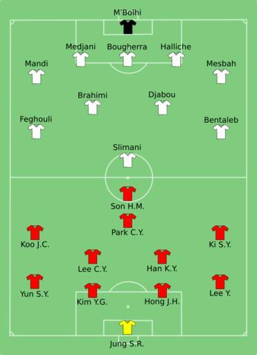 | Keywords: KOR-ALG 2014-06-22.svg 2014 FIFA World Cup Group H match between South Korea and Algeria Groupe H de la Coupe du Monde de football 2014 entre la Corée du Sud et l'Algerie 2014-06-22 21 57 55 own <br />Line-ups http //resources fifa com/mm/document/tournament/competition/02/38/11/76/eng_32_0622_kor-alg_tacticalstartlist pdf Davykamanzi / PeeJay2K3 cc-zero Uploaded with UploadWizard FIFA World Cup 2014 line-ups Algeria national football team line-ups South Korea national football team line-ups Algeria at the 2014 FIFA World Cup South Korea at the 2014 FIFA World Cup |