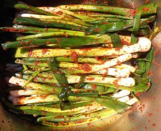 Keywords: Korean.cuisine-SpringKimchi.jpg thumb 128px 春 Scallions Kimchi of Spring onion s with Gochujang Gimchi von Frühlingszwiebeln ; mit Gochujang Paprikapaste ê³ ì¶”ìž¥ W ê¹ ì¹˜ ko 파 ì‹ ë¬¼ 파 ko ê¹ ì¹˜ Own Kimchi Allium fistulosum Gimchi