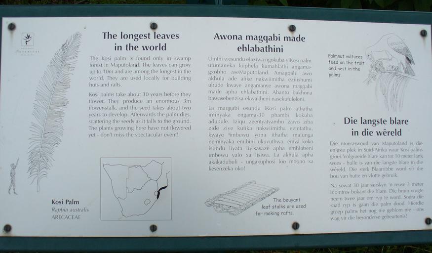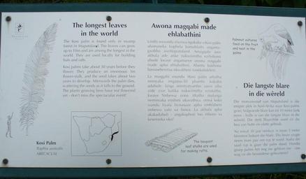 Keywords: Kosi palm sign.jpg Kosi Palm sign Kirstenbosch Gardens Cape Town 2007-03 Andrew Massyn Raphia australis
