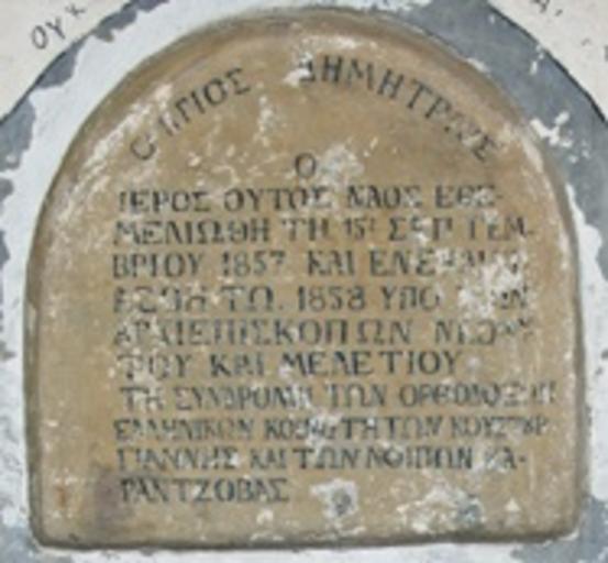 | Keywords: Kostoureni Church Inscription 1858.jpg Ктито ски надпис в цъ квата Свети Димитъ в Косту ени Κτητορική ε ιγραφή στην εκκλησία Άγιος Δημήτριος στην Κωστούργιαννη Ξιφιανή Πέλλας O ΑΓΙΟΣ ΔΗ ΗΤΡΙΟΣ Ο ΙΕΡΟΣ ΟΥΤΟΣ ΑΟΣ ΕΘΕ ΕΛΙΩΘΗ ΤΗ 15Η ΣΕΠΤΕ ΒΡΙΟΥ 1857 ΚΑΙ Ε ΕΚΑΙ ΙΑΣΘΗ ΤΩ 1858 ΥΠΟ ΤΩ ΑΡΧΙΕΠΙΣΚΟΠΩ ΡΟΥ ΚΑΙ ΕΛΕΤΙΟΥ ΤΗ ΣΥ ΔΡΟ Η ΤΩ ΟΡΘΟΔΟΞΩ ΕΛΛΗ ΙΚΩ ΚΟΙ ΟΤΗΤΩ ΚΟΥΣΤΟΥΡΓΙΑ ΗΣ ΚΑΙ ΤΩ ΛΟΙΠΩ ΚΑΡΑ ΤΖΟΒΑΣ http //www dimosalmopias gov gr/index php option com_content task view id 96 Itemid 221 1858 author PD-old Churches in Pella Prefecture |