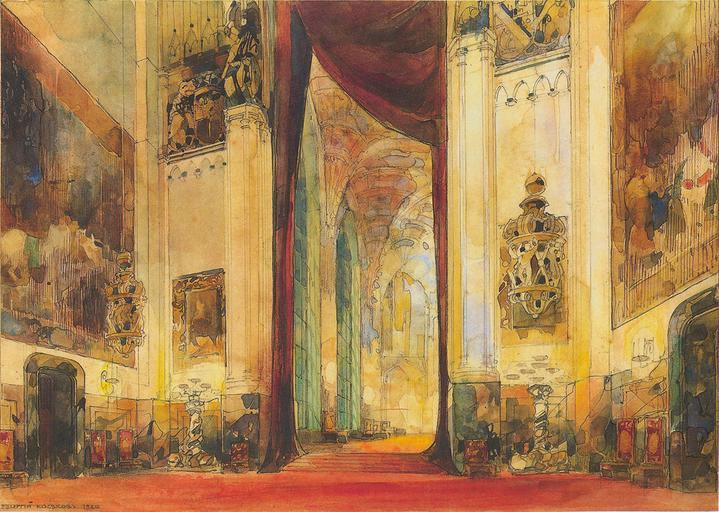 | Keywords: Kosyakov Georgy Antonovich - Hall in the Palace of Westminster.jpg Косяков Гео гий Антонович 1872-1925 Kosyakov Georgy Antonovich 1872 1925 Зал в Вестминсте ском дво це Эскиз деко ации к д аме Ф Шилле а « а ия Стюа т» Hall in the Palace of Westminster Set design for Friedrich Schiller's play Mary Stuart 1920 Бумага на ка тоне ка андаш аква ель белила Paper on cardboard pencil water colour whitewash Size cm 30 42 7 Moscow Private collection Русская г афика от А до Я СЛОВО 2002 С 116 Other versions PD-old-70 Friedrich Schiller Palace of Westminster in art Set designs from Russia |
