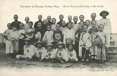 | Keywords: Kouang-Tchéou-Wan School.jpg en Pupils and teachers of the École franco-chinoise at Ma-Ché Fort Bayard French Leased Territory of Kouang-Tchéou-Wan now Guangzhouwan Postcard issued c 1905-1910 2014-09-04 21 08 26 Delcampe net auction Fang Tong-San Kwangchowan China 1905-1910 PD-old-70 Uploaded with UploadWizard Guangzhouwan |
