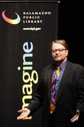 Keywords: 06March2012 Luis Alberto Urrea, author of "The Beautiful North," the 2012 Reading Together book selected by the Kalamazoo Public Library, spoke of cross cultural experiences. usa mi kalamazoo