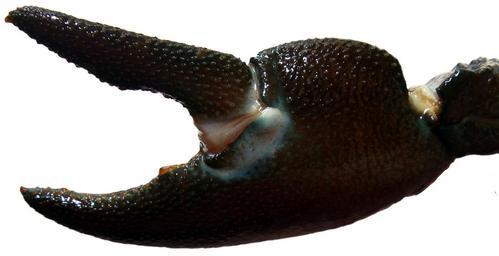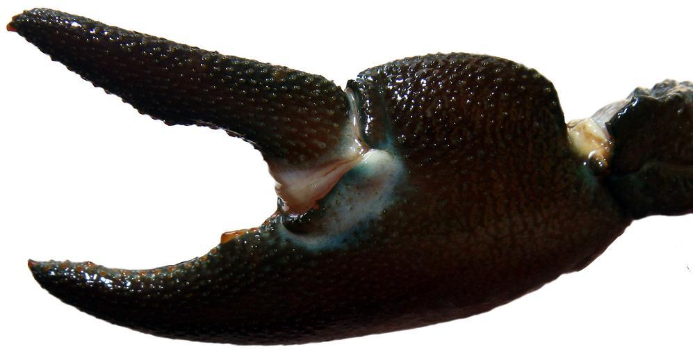 Keywords: Kräftklo-1.jpg The claw of a signal crayfish clearly showing the signal mark on the joint Klon på en signalkräfta med signalfläcken på klons led väl synlig own David Castor dcastor animals Crustacean chelipeds Pacifastacus leniusculus