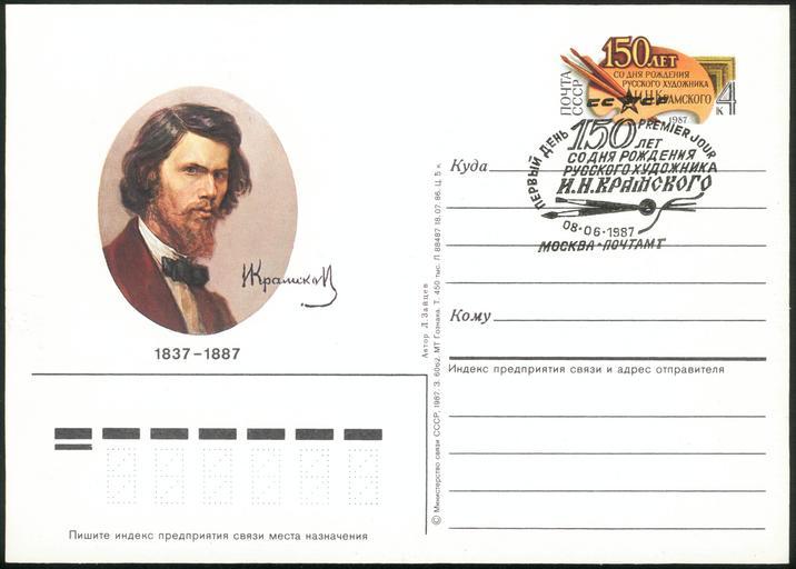 MAKE A MEME View Large Image Kramskoj USSR original stamp.jpg Kramskoi USSR original stamp 1987 150 лет со дня  ождения  усского художника И  К амского <br /> Односто онняя почтовая ка точка ...