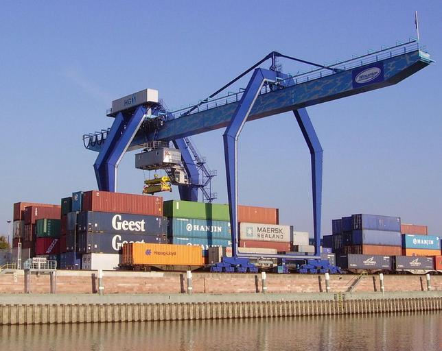 Keywords: Kran Muehhlauhafen 01.jpg en port of Mannheim Germany Own Immanuel Giel 2008-09 Mühlauhafen Port cranes in Mannheim