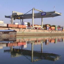 Keywords: Kran Muehhlauhafen 05.jpg en Port of Mannheim Germany Own Immanuel Giel 2008-09 Mühlauhafen Port cranes in Mannheim