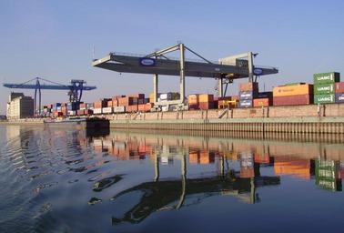 Keywords: Kran Muehhlauhafen 11.jpg en Port of Mannheim Germany Own Immanuel Giel 2008-09 Mühlauhafen Port cranes in Mannheim