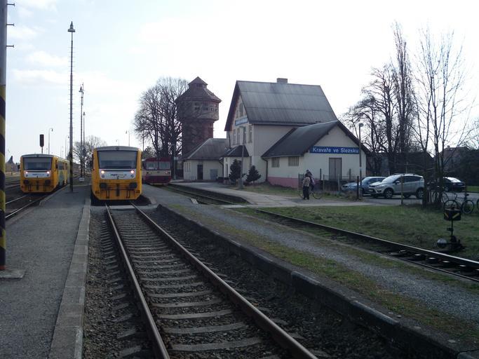 | Keywords: Kravare ve Slezsku station.JPG Kravaře ve Slezsku Czech Republic with two Regionova and one 810 diesel railcar on regular passenger trains 2012-04-04 own Jan Pešula 49 93516 18 006999 region CZ cc-zero Uploaded with UploadWizard Kravaře Opava District Railway line 317 Czech Republic Railway line 318 Czech Republic Train stations in Moravian-Silesian Region CZ Class 814 of ČD CZ Class 810 of ČD | ||||