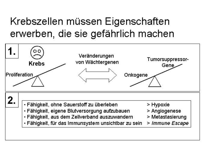 Keywords: Krebsentstehung 1106092 FK.png en Picture shows properties of cancer cells which they need to aquire de Bild zeigt Eigenschaften die eine Tumorzelle erlangen muss um gefährlich für den Körper zu werden own Habe es selbst in Powerpoint hergestellt Kischkel 2011-06-09 Cc-zero Diagrams in German |