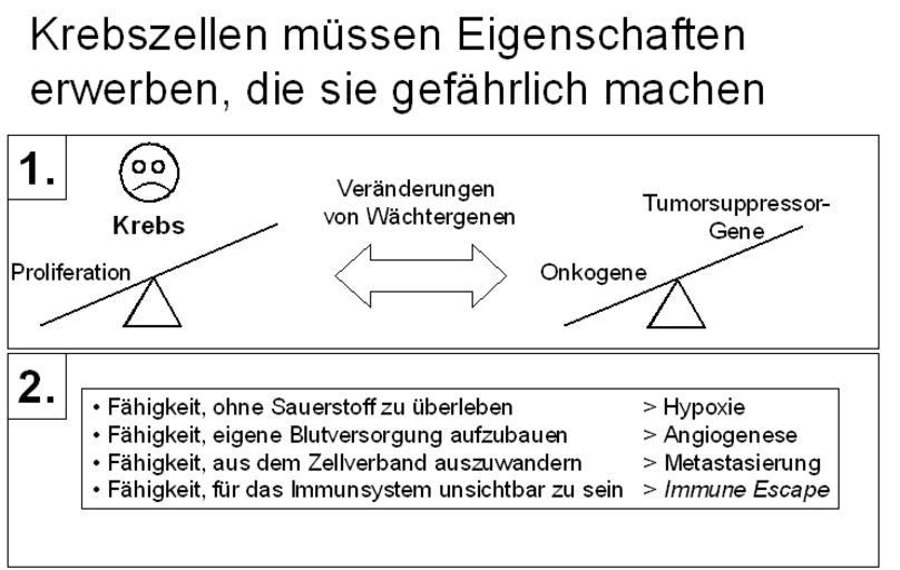 Keywords: Krebsentstehung T2 110623 FK.png en Picture shows properties of cancer cells which they need to aquire de Bild zeigt Eigenschaften die eine Tumorzelle erlangen muss um gefährlich für den Körper zu werden own Kischkel 2011-06-23 Krebsentstehung_1106092_FK png Cc-zero Diagrams illustrations and schemas concerning cancer |