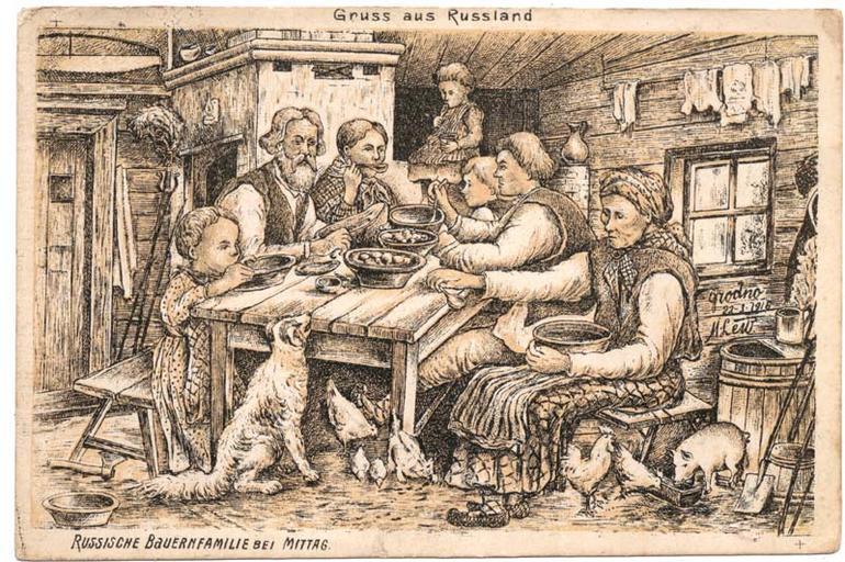 Keywords: Krestyanskaya-russkaya-semya-za-obedom-1916.jpg ru До еволюционная отк ытка «П ивет из России К естьянская усская семья за обедом» 1916 Описание Х омолитог афия Пе вая ми овая война а отк ытке надпись Г одно 23 03 1916 Издана во в емя оккупации Г одно немецкими войсками Отк ытка п ошла полевую фельдпочту в 1916 году Художник - Hans Leu п едположительно en Peasant lunch Russia 1916 1916 http //obook ru/index php action show_books itemid 621 prettyPhoto Hans Leu Custom license marker 2012 11 19 PD-RusEmpire Uploaded with UploadWizard Peasants in art Peasant lunch Meals in Russia Peasants from Russia in art